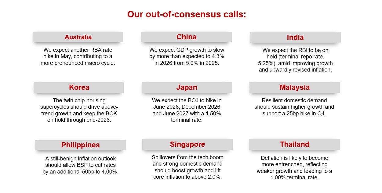 In 2024, AI contributed only 0.26pp to Asia’s real GDP growth of 4.1% y-o-y, but that rose to 2.01pp in 2025, suggesting half of Asia’s growth for the year was AI-driven. In several economies, the AI contribution in 2025 partly or fully offset negative non-AI growth, preventing an outright contraction. This contrasts with 2024, when AI largely acted as an incremental upside rather than a stabilizing force.