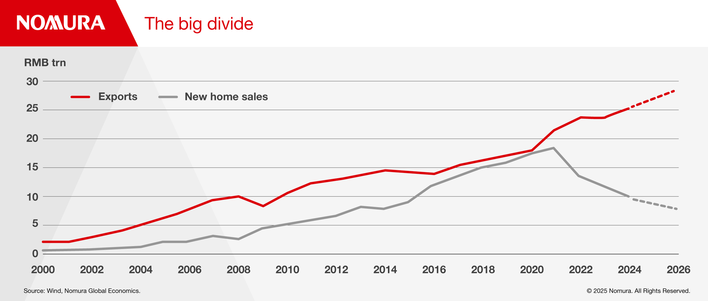 China is unlikely to sustain its exceptional export growth as global trade normalizes and protectionist pressures mount. With property investment continuing to decline at a 20% annual rate and manufacturing investment turning negative, Beijing will need to act decisively.
