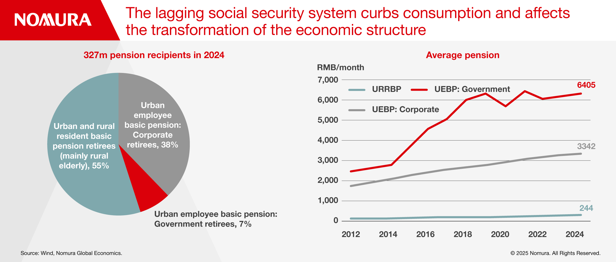 With slower export growth and limited prospects for recovery in the property sector, China will face pressure to boost consumption. To accomplish this, the government will need to significantly strengthen its social welfare system.