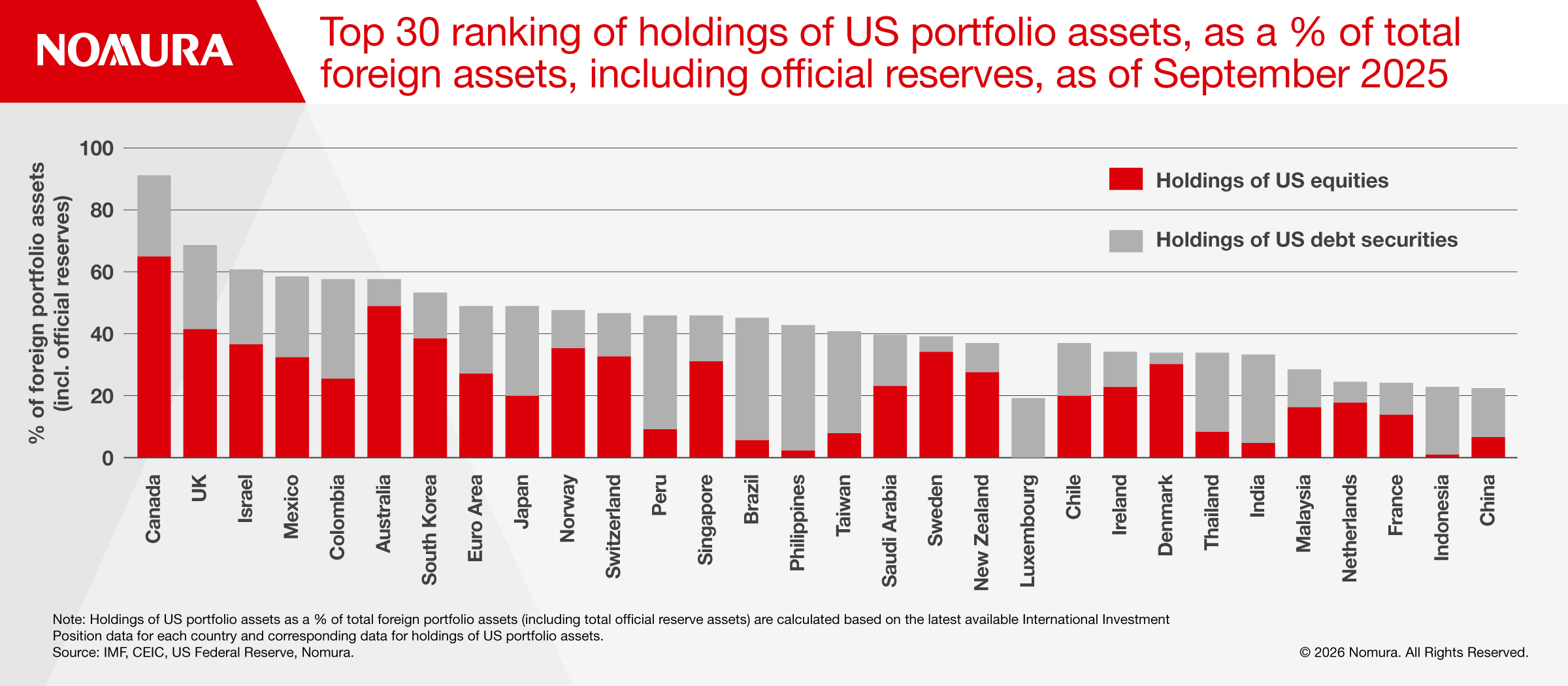 Figure 1 shows the 30 largest foreign holders of US portfolio assets, valued in trillions of dollars, as of September 2025.