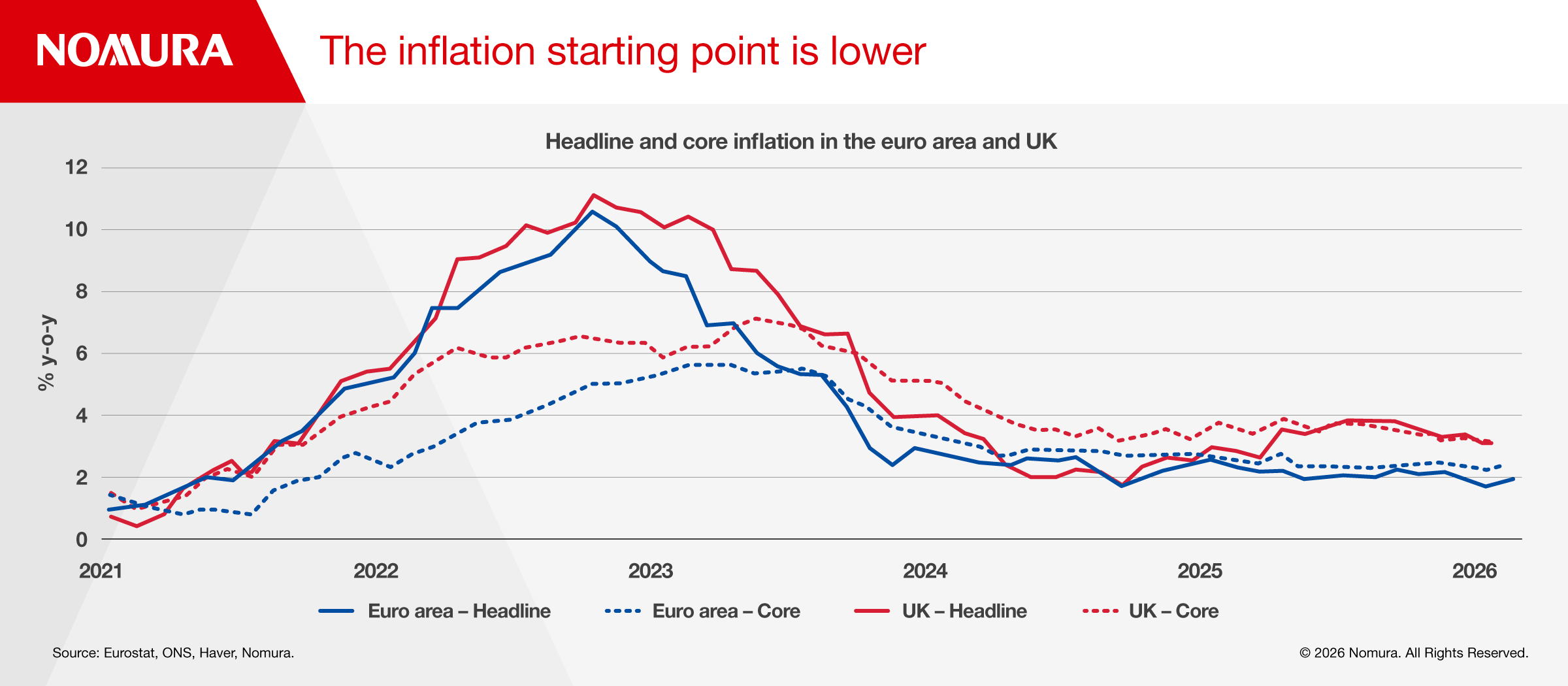 However, there are fundamental differences between now and then in the euro area and the UK that mean, in our view, the central banks may respond differently to the war in Iran.