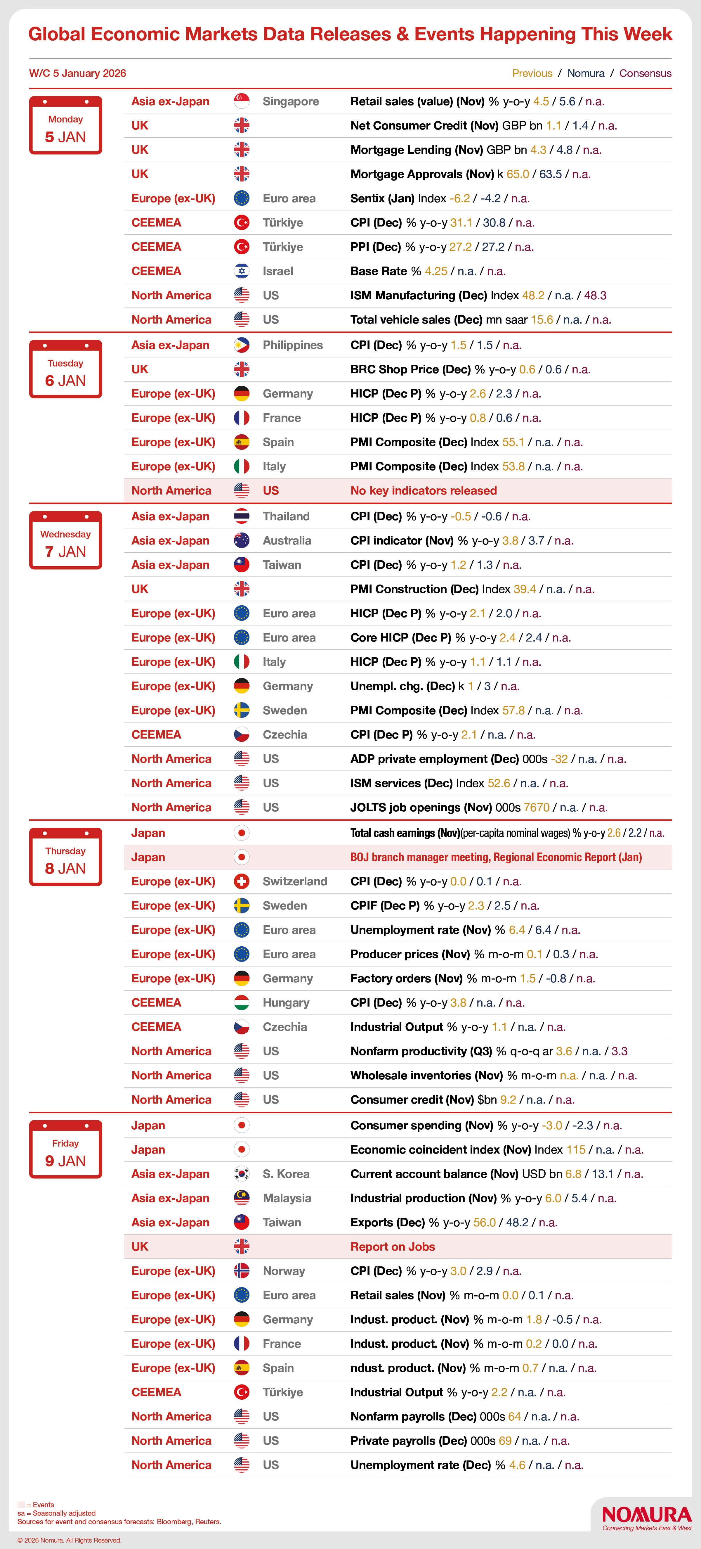 Our weekly updated overview highlights the key releases of global economic market data from around the globe and provides an economic outlook for 2026 by region.