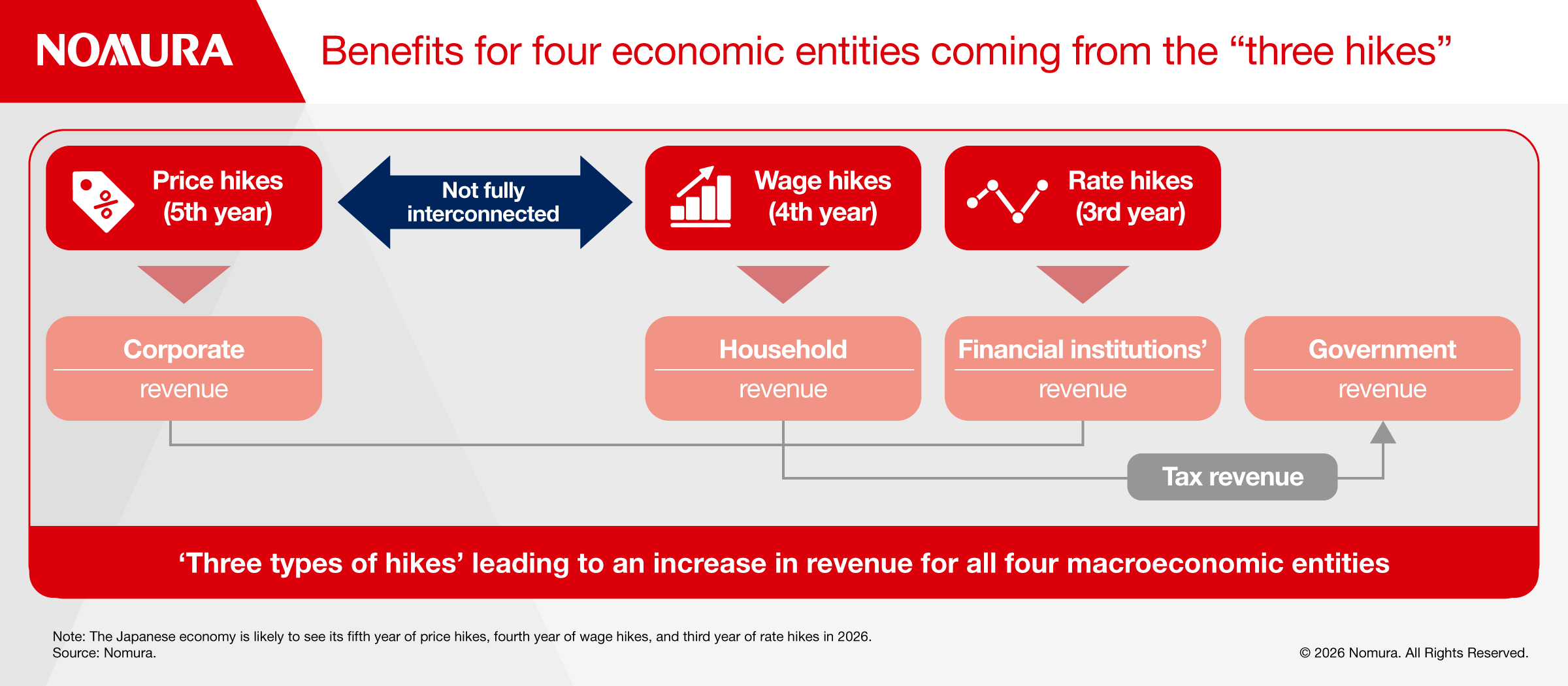 With these three hikes occurring in Japan, we expect to see these benefits for all four macroeconomic entities — companies, households, financial institutions, and the government — as the Japanese economy moves closer to a fully functioning, normal economy in 2026.